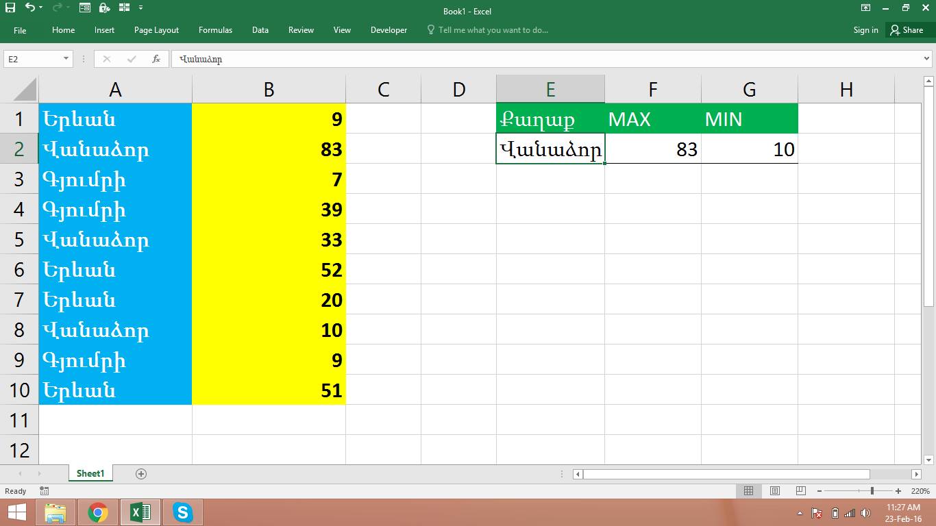 MS EXCEL – MAX ԵՎ MIN ԸՍՏ ԿՐԻՏԵՐԻԱՆԵՐԻ